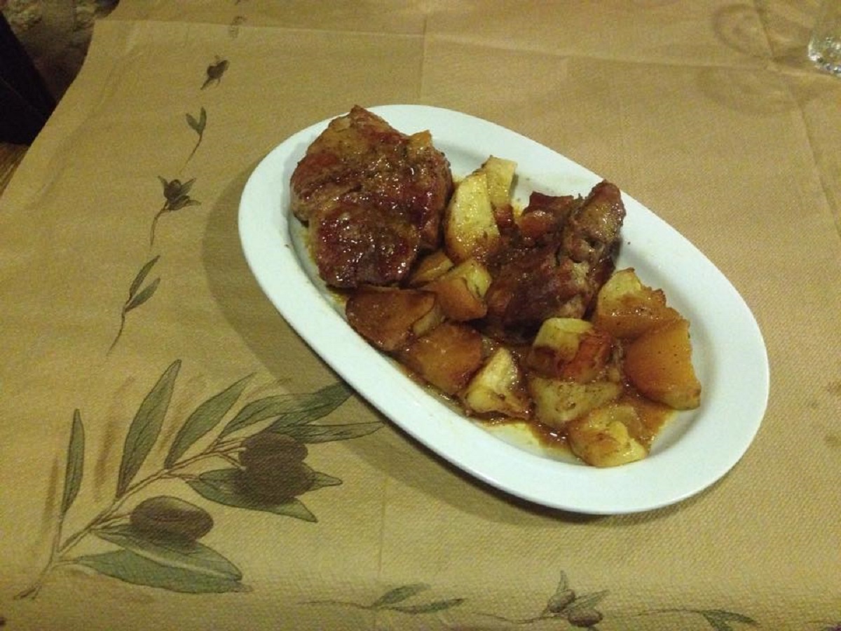 Χοιρινό φούρνου με μέλι και μουστάρδα, σερβιρισμένο στην ταβέρνα «Γεωργαντάς». Photo: Facebook (Taverna Georganta)